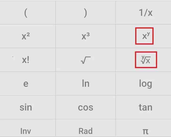 用手机计算器为例,点开科学计算器,看这些功能键