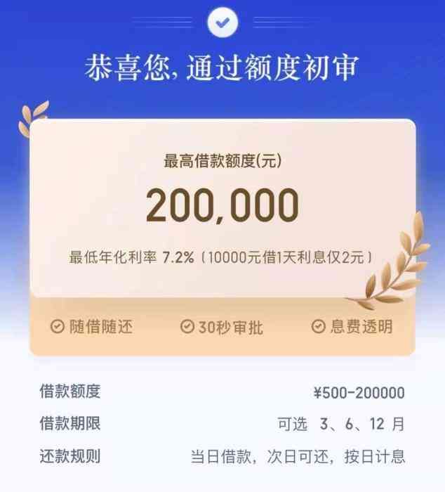 一些软件虽会标注“年利率7.2%起”,但实际利率以客户申请时风险评级而定或实际授信结果为准。也就是说,你需要先进行贷款操作,授权APP获取个人征信报告,并审核通过后,才能知晓具体的贷款利率。