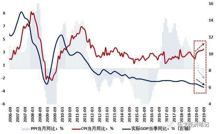 近期我国GDP下探至6%的历史新低,但CPI升至3%的近六年高位。经济下行与物价高企共存的“滞胀”格局并非宏观经济的常态,其往往发生在成本冲击时期。其实,若排除猪肉因素,CPI的其他部分及PPI却大都下行。当前究竟是通胀还是通缩,各界莫衷一是。对此,宏观政策将如何抉择?