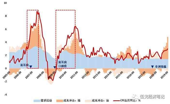 从中国的史实来看,成本冲击的同时如果再叠加需求刺激,最终容易形成物价螺旋式上升的风险。以中国26-27及2010-2011年期间为例,在蓝耳病、口蹄疫等成本冲击叠加需求拉动下,CPI增速曾一度破“8%”、破“6%”。从当前的情形来看,今年四季度在基数效应等作用下猪油价格共振风险加大,此时若叠加过多的货币刺激,通胀压力势必陡增。