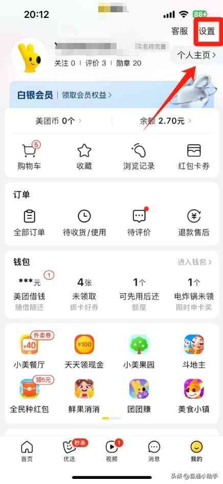 1、进入美团我的界面,点击“设置”。