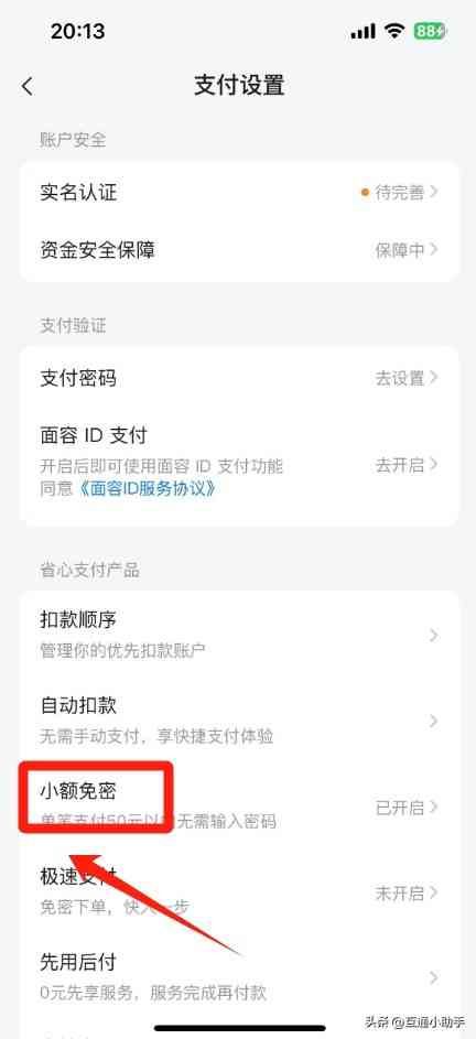 3. 其他支付方式:如果使用支付宝或微信支付,需分别在支付宝或微信APP中关闭小额免密功能。