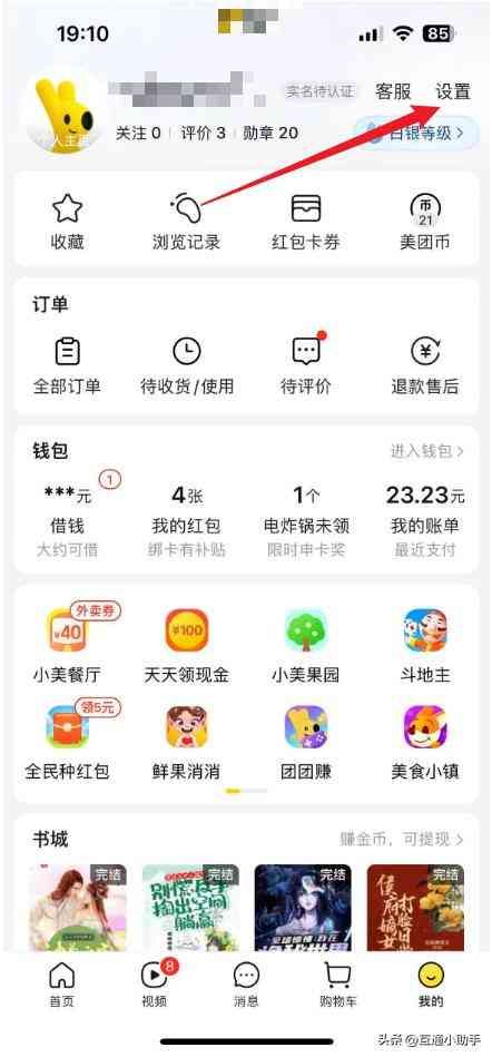 1、进入美团我的界面,点击“设置”。
