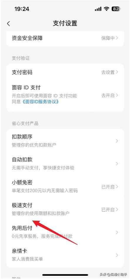 3、进入支付设置界面,点击“极速支付”。