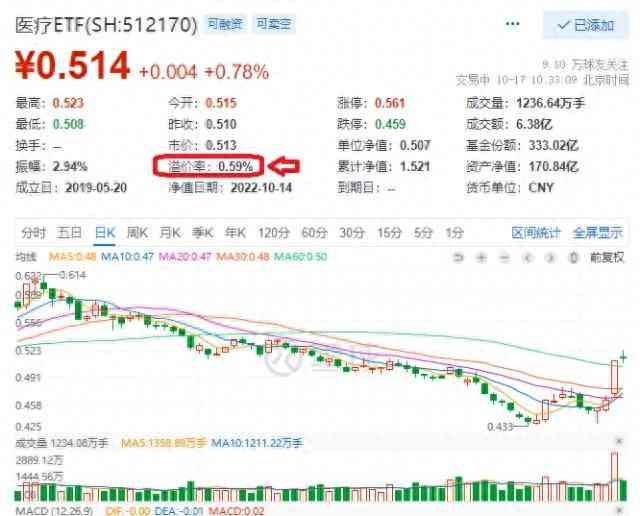 值得注意的是,早盘医疗ETF(512170)溢价水平持续居高不下,一度超过1%,截至发稿溢价仍高达0.59%,显示资金热度极高。