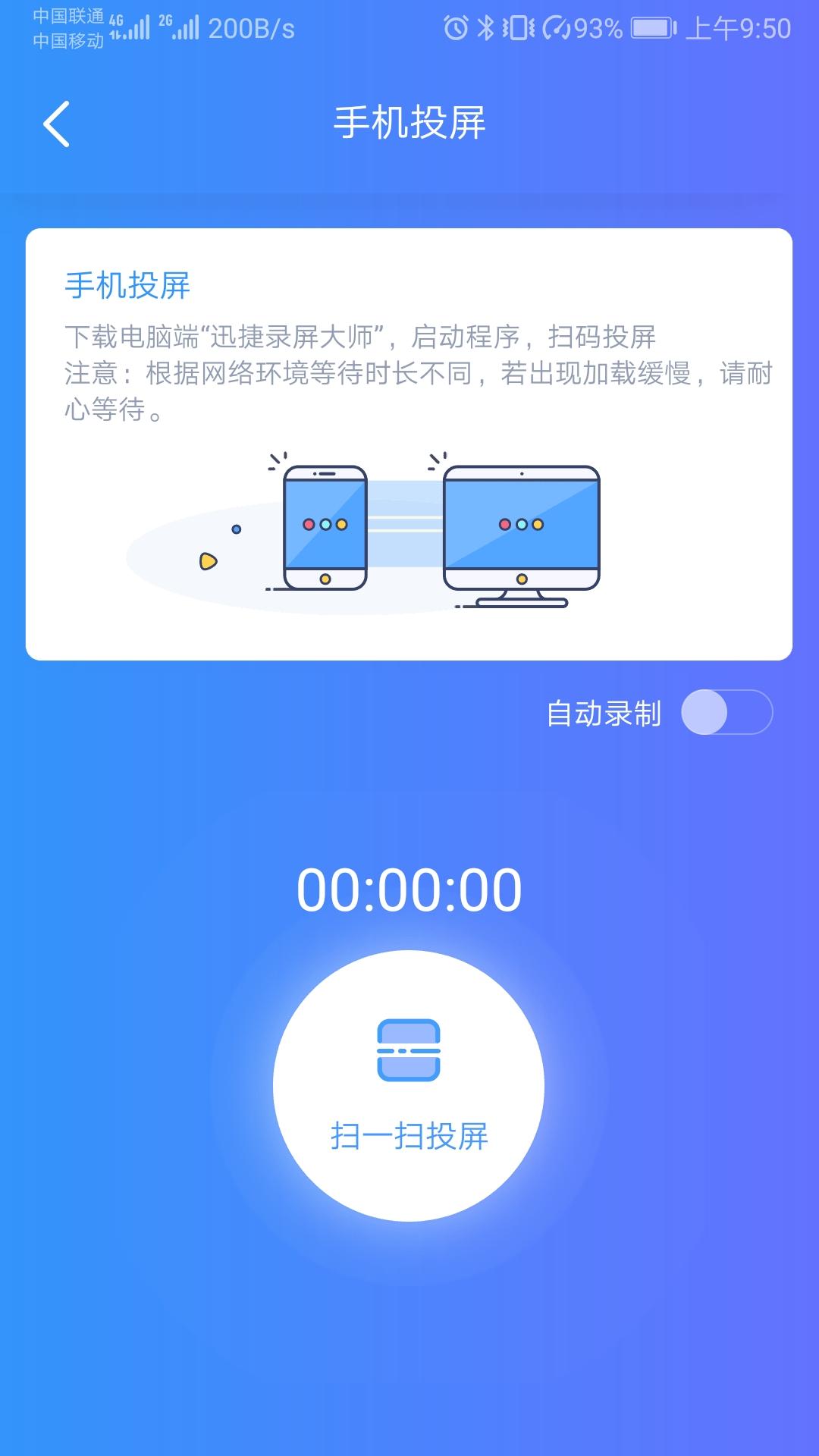 以上是电视端的投屏方法,如果你想要投屏到电脑端,则可以使用迅捷录屏大师,轻松帮你实现投屏呢!只需要你点击【扫一扫】,然后在电脑端下载一个同名软件,即可瞬间实现投屏,可以说是非常方便了。