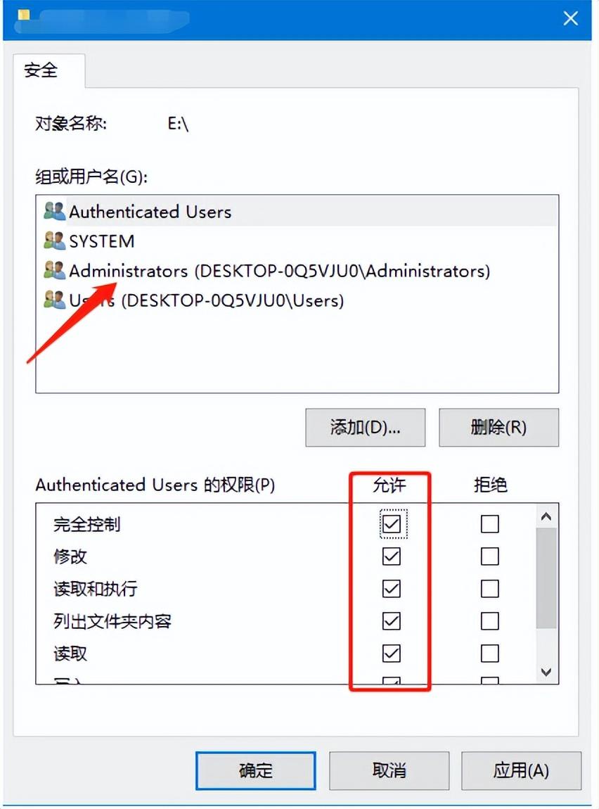 3、在打开的编辑界面中,勾选所有的允许权限项,之后点击确定,使我们能完全控制,这样就能打开程序或文件了。