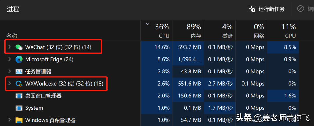 于我来说,使用最为频繁的软件是微信和企业微信,其目前还未提供原生的 ARM 程序,而是通过模拟的方式运行。因此 CPU 的开销会相对大一些: