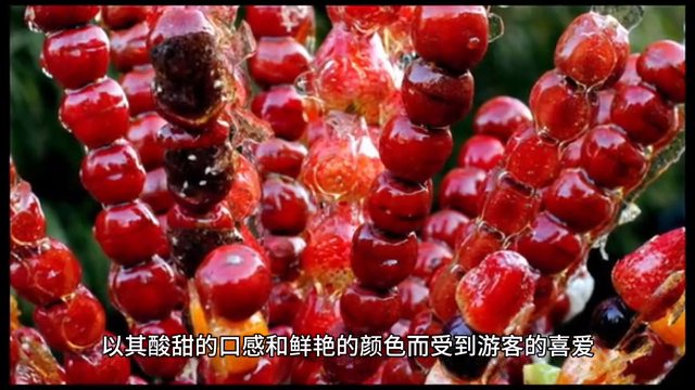 ·4.冰糖葫芦:冰糖葫芦是北京冬季的传统小吃,以其酸甜的口感和鲜艳的颜色而受到游客的喜爱。在漫天飞舞的雪花中手握一串冰糖葫芦,感受那独特的中国风味。