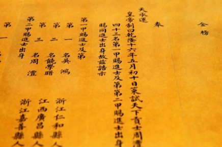殿试由皇帝来决定名次,其排名一共分为一甲、二甲、三甲这三个档次,每个档次里还有更细的排名。一甲只有三人,大学士会把前十名的卷子提供给皇帝,皇帝圈出三名,按名次称状元、榜眼、探花,这三鼎甲授进士及第。