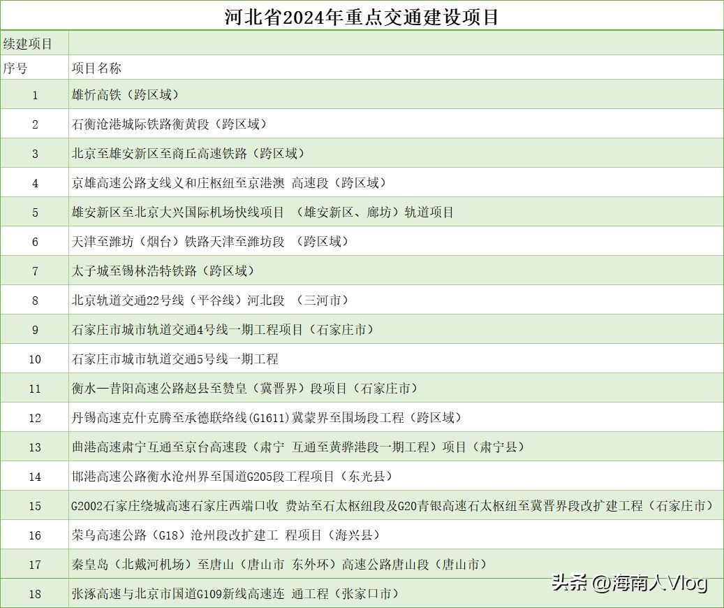 河北省2024年续建项目18项,其中高速公路项目9项目,