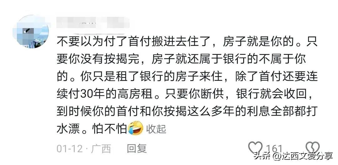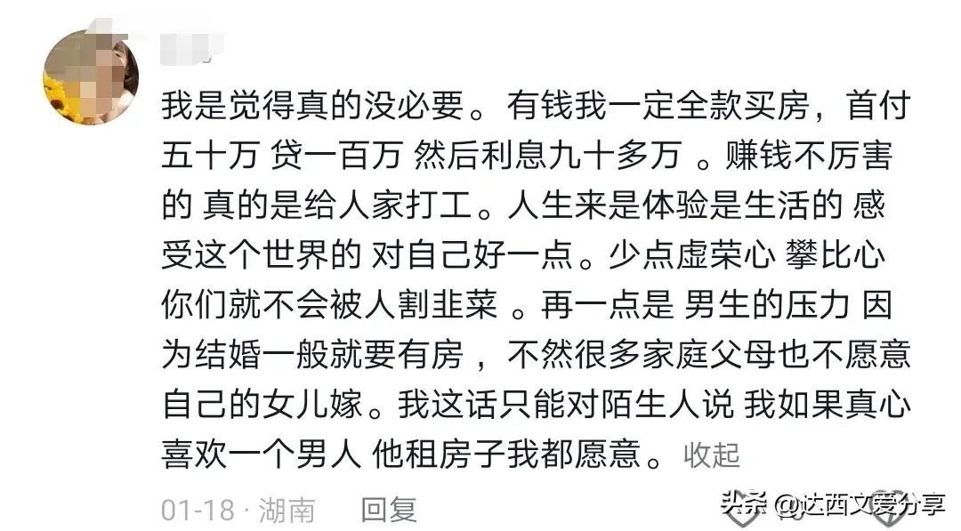 现在的年轻人真的越来越清醒了,他们说贷款买房就是先给银行买一套,再给自己买一套。网友这样的观点你们认可吗?