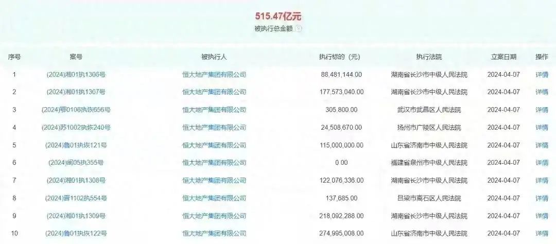 4月7号,恒大地产集团有限公司,被有关部门强制措施十条,总金额515多亿,强制措施是不是太少了一点?主要是他欠款的太多了,主要是有些问题,都还没有说?