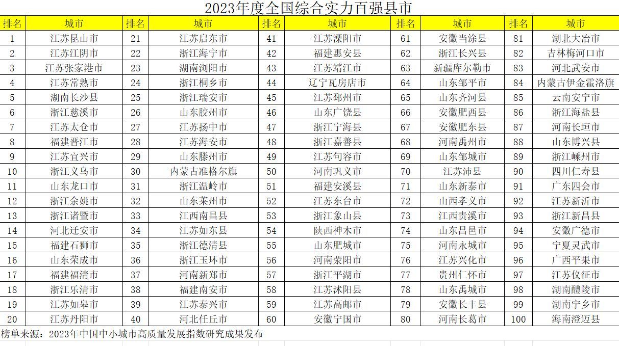 2023百强县市最新排名:义乌第10,博兴县第88,邹城第69,四会91