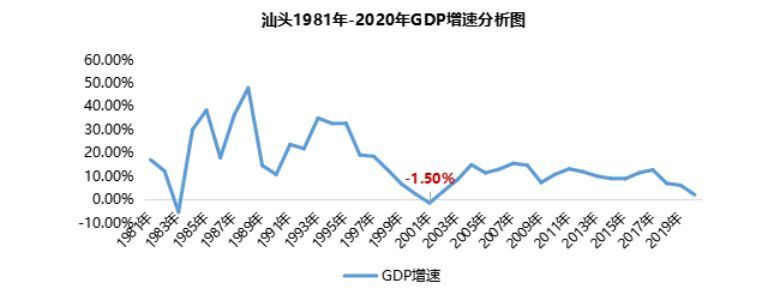 创新驱动和产业结构上的缺点,使得汕头自从1995年之后,在经济的发展上便显得有些动力不足,呈现出断崖式下跌的趋势。