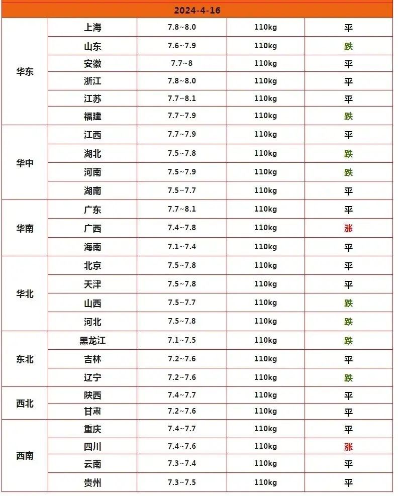 与此同时,在生猪和鸡蛋市场,价格走势呈现不同特点。鸡蛋市场价格在短暂回升后再次出现下调,主要受到需求疲软和供应压力的影响。目前,产区鸡蛋报价为3.38元/斤,销区市场蛋价为3.27元/斤,销区价格下跌了约0.05元/斤。
