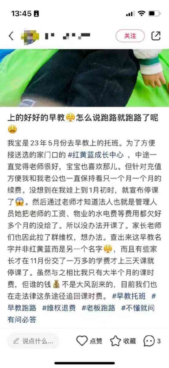 但如今,在社交平台上可以明显看出,家长对红黄蓝机构的持久性并不信任。对于大多数家长来说,高质量发展是后话,作为教育机构,首先得保证“不倒闭、不跑路”。