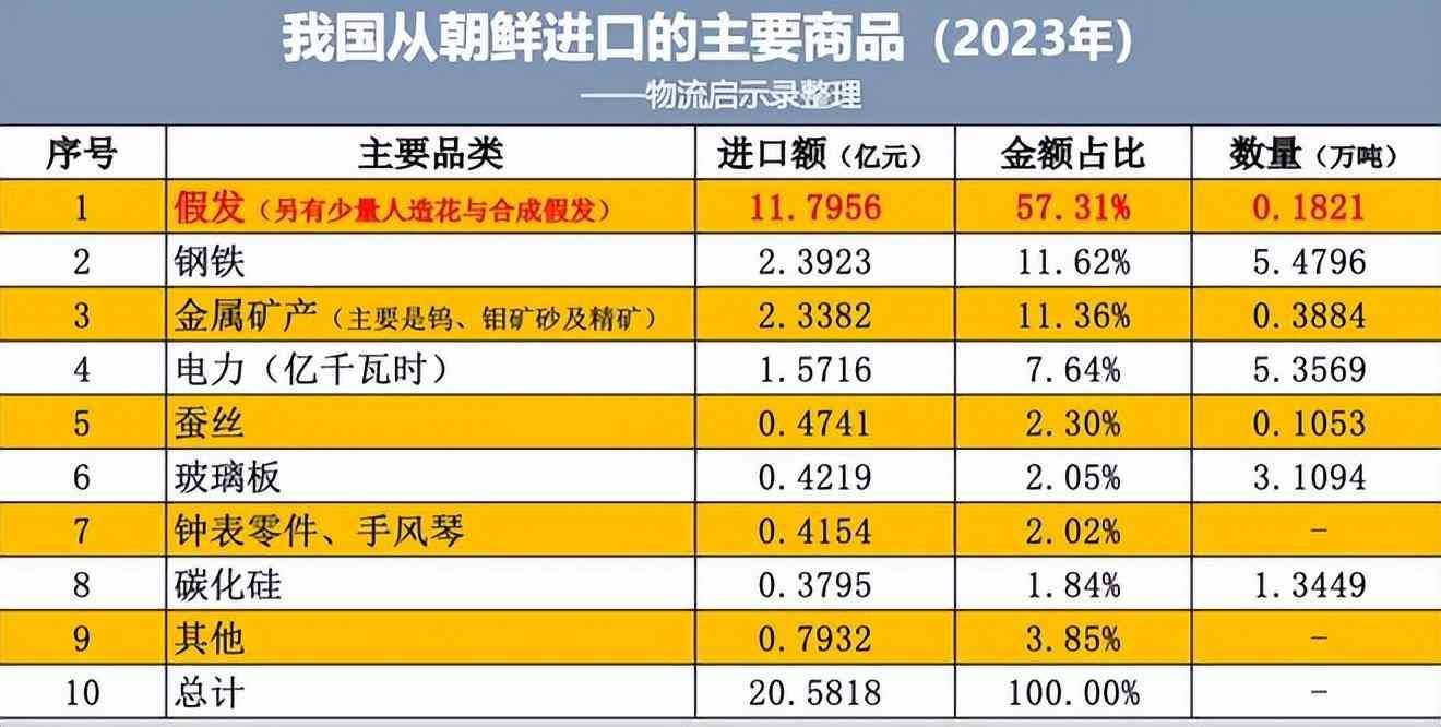 从假发到矿产再到电力资源,虽然我们每年从朝鲜进口20亿的商品,但其实大家在生活中很难接触到。