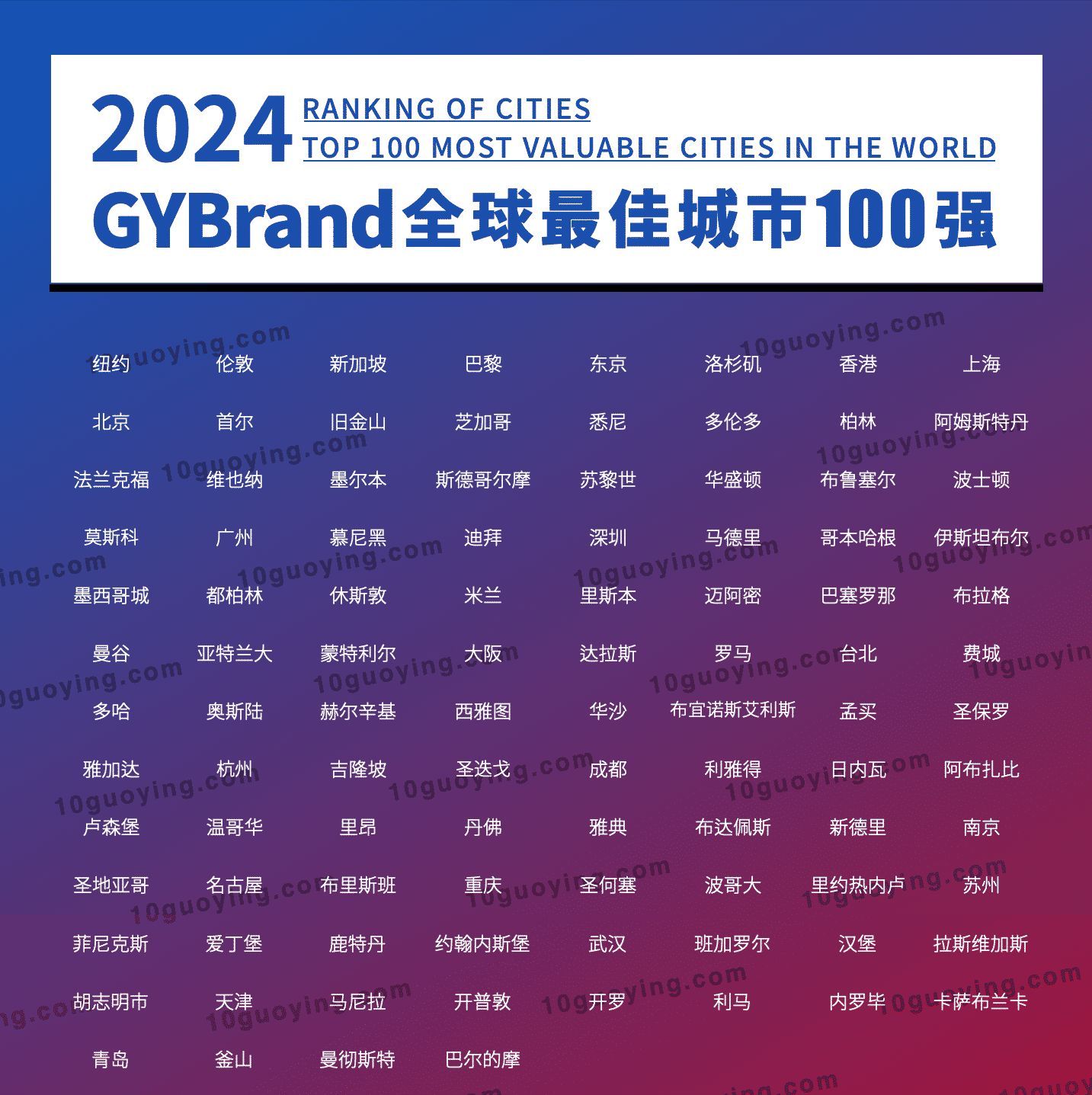 我们都知道,一座城市的强弱并不能单靠GDP高低进行判断,而是要根据多个维度进行综合评判,近日,全球性的品牌评估与咨询机构GYBrand根据经济实力、商业环境、基础设施、生活质量、国际声誉、发展潜力等指标进行综合分析,随后发布了2024全球最佳城市100强排行榜。