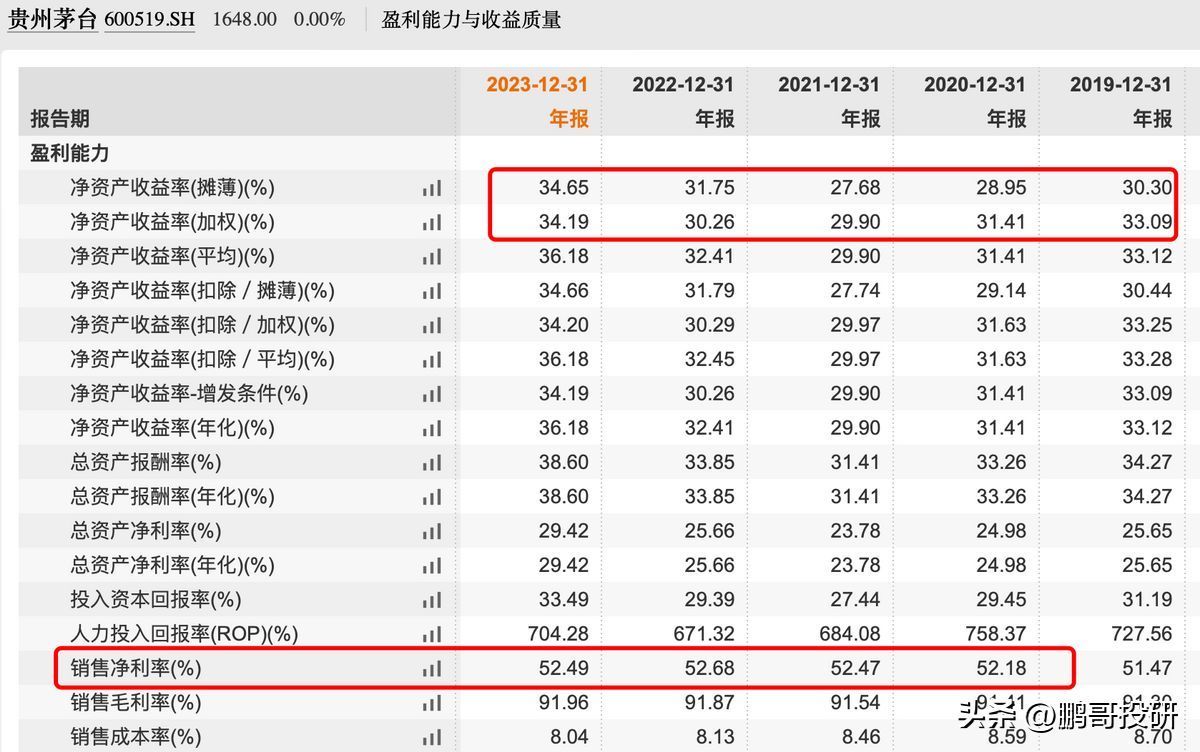 贵州茅台是白酒龙头股,公司的ROE高达30%,净利率在52%左右,资产负债率不到20%,这公司的财务相当稳健。