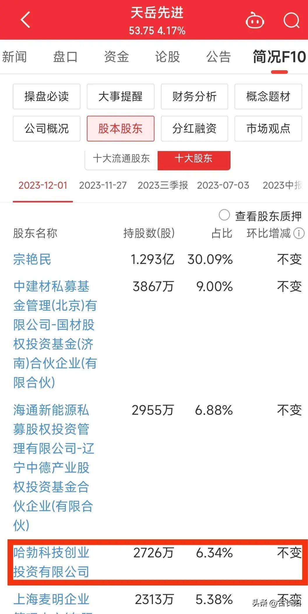 天岳先进,华为哈勃科技持股6.34%(详情下图),华为第四大股东。天岳先进主要从事半导体材料的研究生产。半绝缘型碳化硅底衬世界前三。