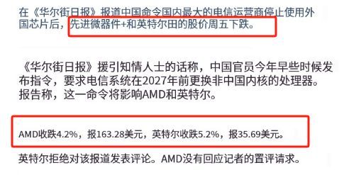 可这些运营商都是英特尔、AMD公司的忠实用户,他们把企业芯片改成国产,就意味着英特尔、AMD要痛失一大部分来自中国的订单。