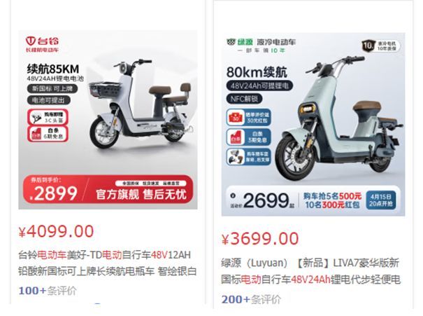 一组48V24AH的锂电池可以续航多少,同样我们也是参考厂家的宣传数据来看,小行家找到同样的台铃品牌以及绿源品牌,搭载48V24AH锂电池,分别续航在85公里、80公里,那么,48V24Ah钠电池和48V24Ah锂电池的续航相差大概在40~50公里左右。