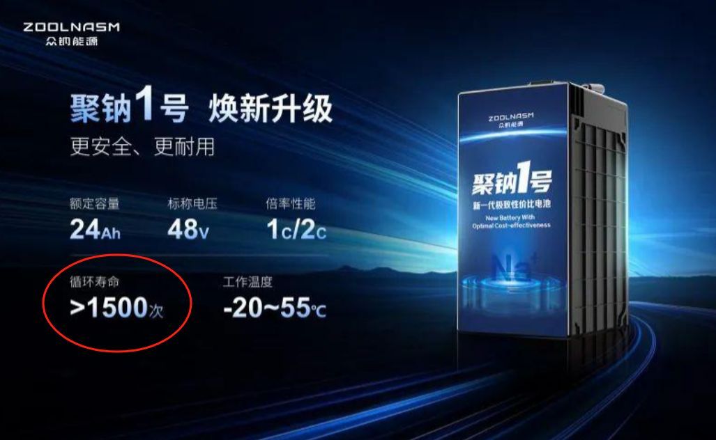 都说钠电池的寿命也很长,但根据目前发布销售的钠电池聚钠1号为例,宣传的循环寿命>1500次,我们就按照1500次充放电次数计算,如果每1~2天充放电一次,大概的寿命为4~8年左右,这个寿命是比铅酸电池要高不少。