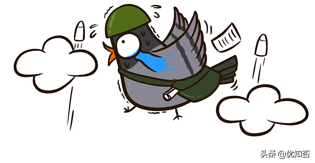 在信息不发达的年代,信鸽是一种非常有效的信息传递工具。有文献记载,早在5年前,古埃及就利用信鸽传递信件了。后来信鸽中出现了一种小兵种,被称为军鸽。在战争年代,它们经常要冒着枪林弹雨穿越战场传递信息,因此在战场上没人敢忽视它们。