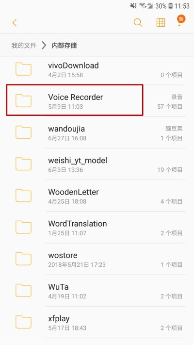 这是手机录音文件的保存目录,包括手机通话录音和录音机录音下来的文件。这个也是建议大家定期做个清理,把没有的通话录音还有一些会议录音给清掉,一到三个月清理一次都行。