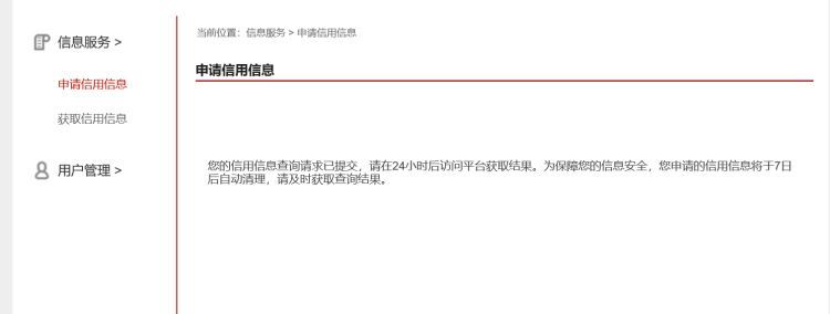 提交完成后,需要等待24小时后再重新登录平台获取结果,且为了保障个人信用信息的安全,7天后会自动清理,一定要及时登录查询。