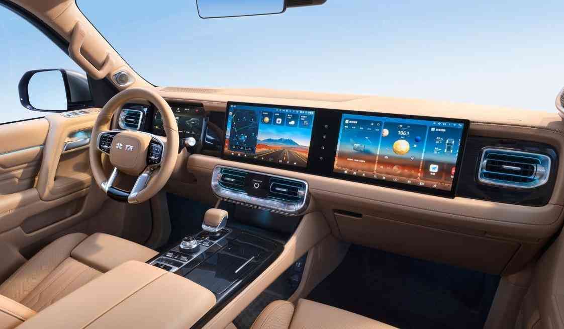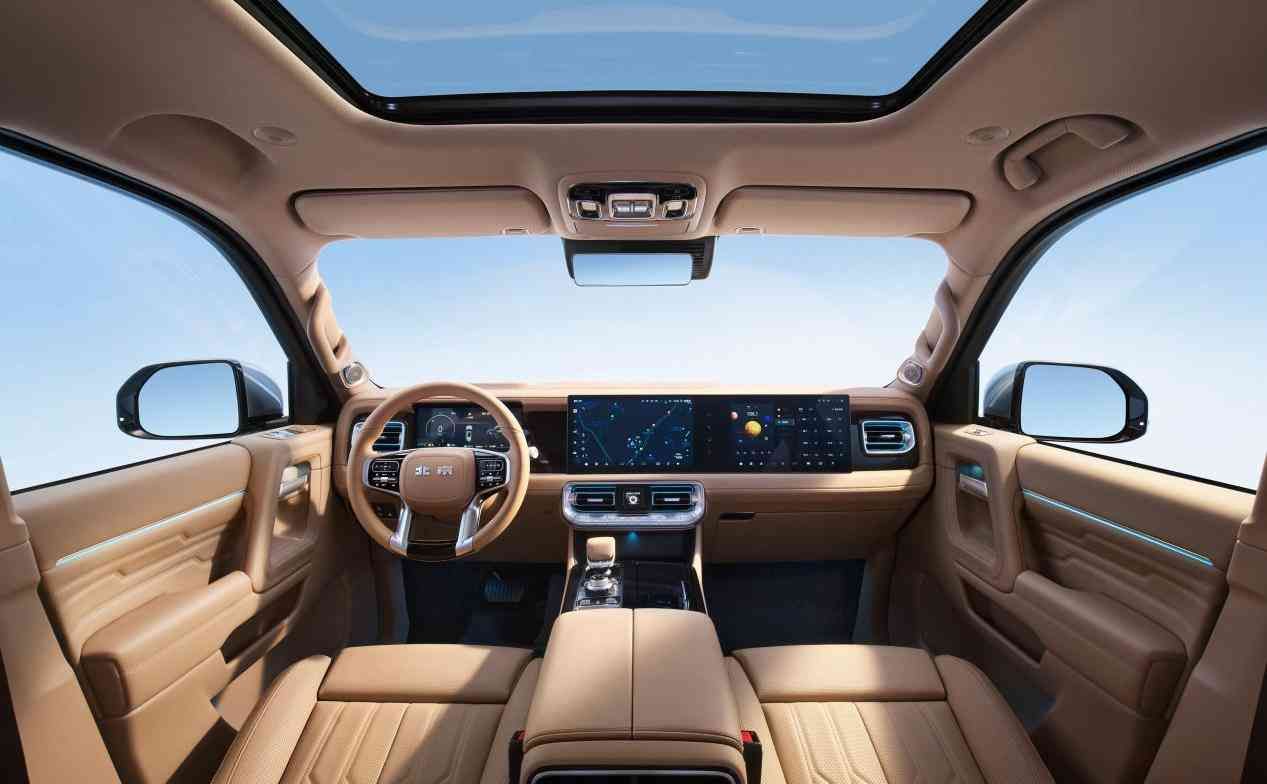 舒适性方面,BJ60雷霆配备了L2级驾驶辅助(支持全速域自适应巡航)、遥控泊车、循迹倒车、可开启全景天窗、50W无线手机充电、前排座椅加热/通风/按摩、后排独立空调等配置,可以说该有的都有了。车内配备了10.25英寸全液晶仪表盘、双12.8英寸中控与副驾双联屏、1.92英寸启动按键屏、9英寸流媒体后视镜以及HUD抬头显示等,更具科技感,也能为旅途增添更多乐趣。