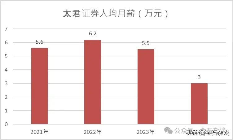 金石杂谈统计wind数据发现,太君证券在2022年达到顶峰,人均月薪高达6.2万,2023年略降,2024年Q1近乎腰斩至3万,如今再度大幅降薪,薪酬比中金还低,中金起码人均还有3.5万。券商在降薪这条路上着实太卷了。