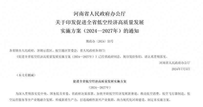 浙江、湖北、江西、四川等多省人民政府也在同日发布类似的文件,将以今年为起点重点开发低空经济赛道。
