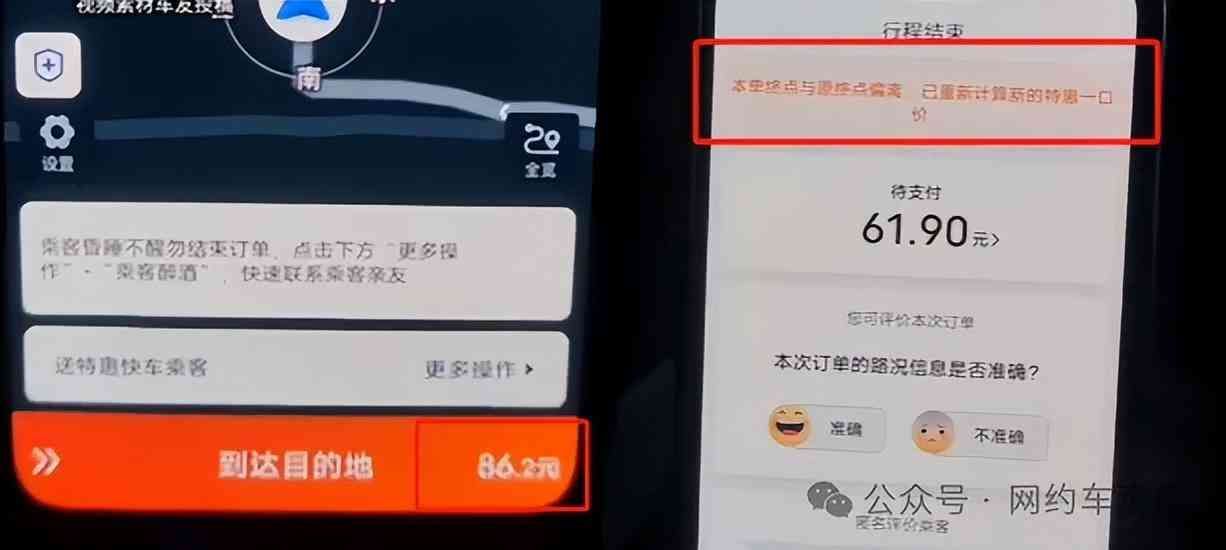 第三种情况,乘客在行程开始后修改了订单的目的地位置,导致乘客端的预估价格发生变化,而司机端的订单显示金额还是以乘客修改前的订单金额,如果将乘客端的预估金额截图与司机端显示的金额对比就会出现明阳截图。