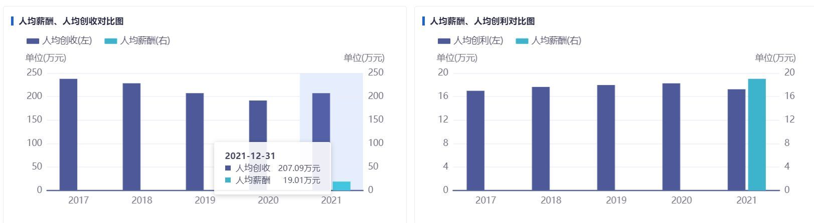 人均工资分别是19万和12.6万。