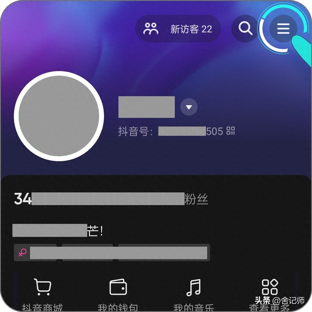 第二步、进入个人中心,点击右上角的“三横”图标。