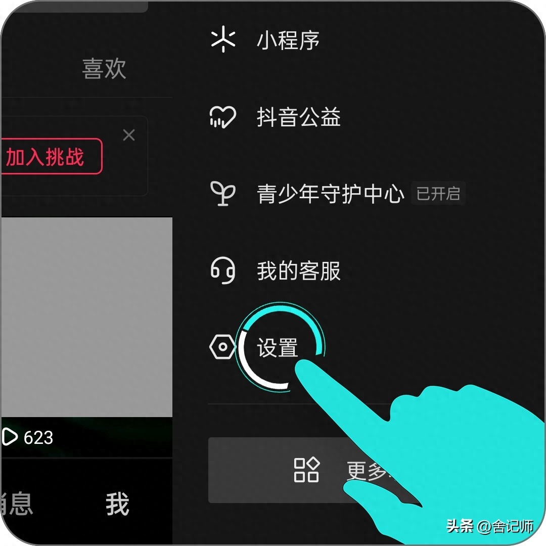 第三步、在滑出的页面,点击最下的“设置”选项。