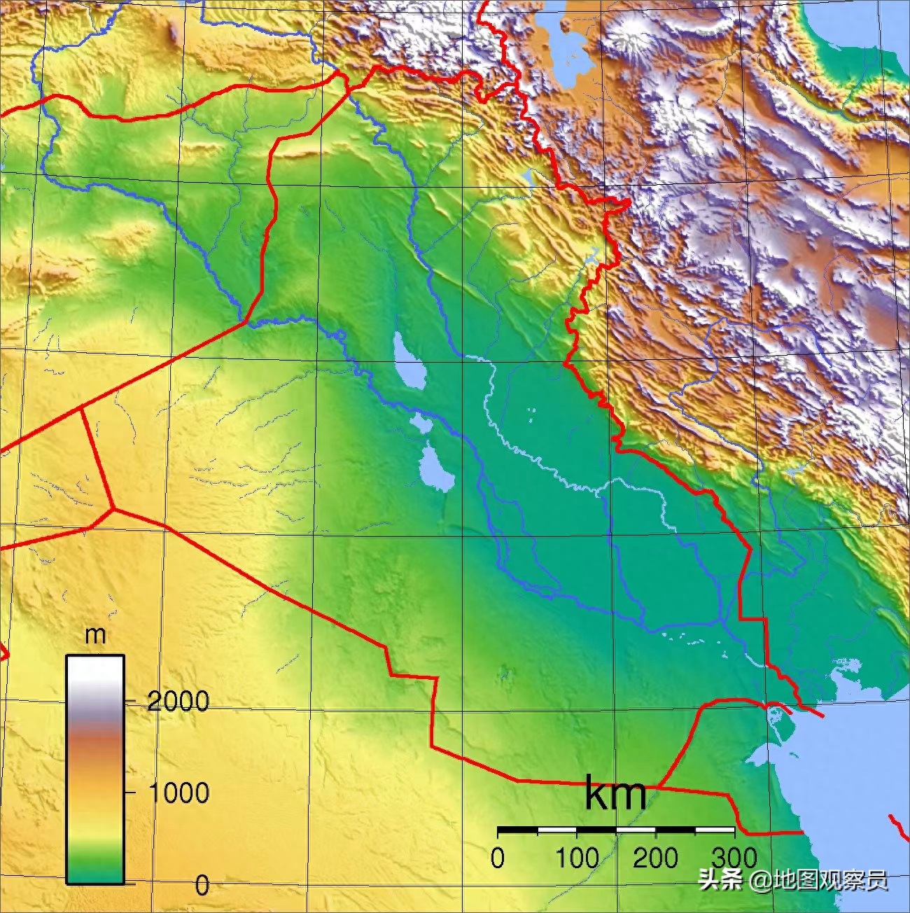 这里东面是伊朗高原,西面是阿拉伯沙漠,北面是土耳其高原,南面是波斯湾,绵延千里的底格里斯河、幼发拉底河汇集土耳其雪山的冰雪融水,在这里咆哮而过,向南经过草原、平原到南部沼泽性的两河三角洲,并最终一起汇入波斯湾。