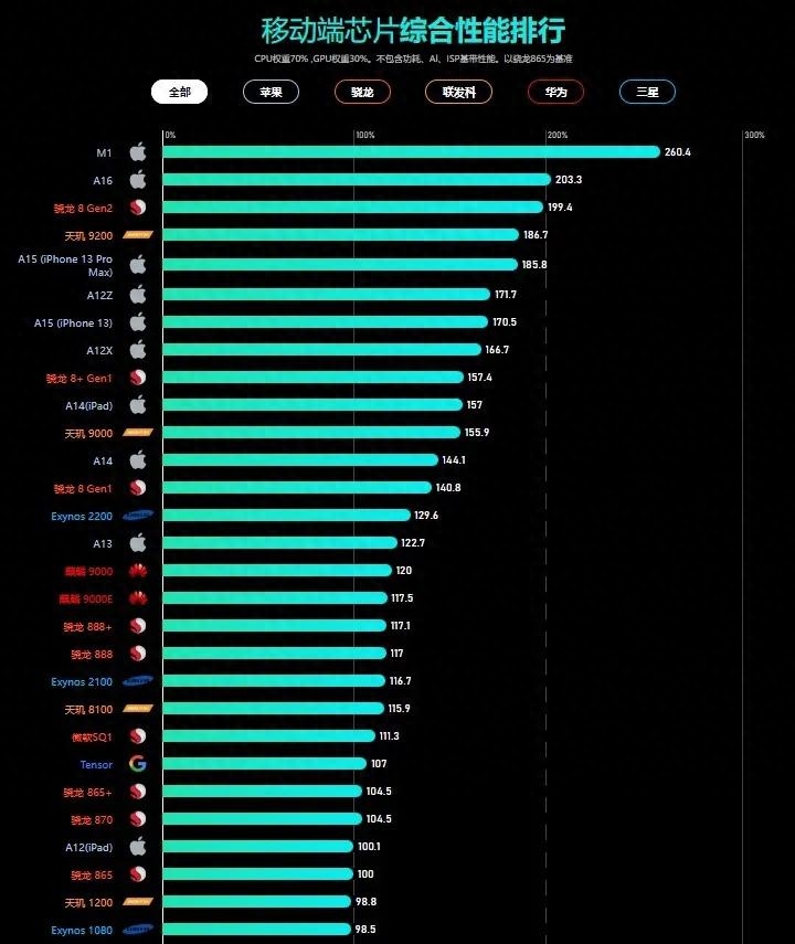 三、移动芯片综合性能排行