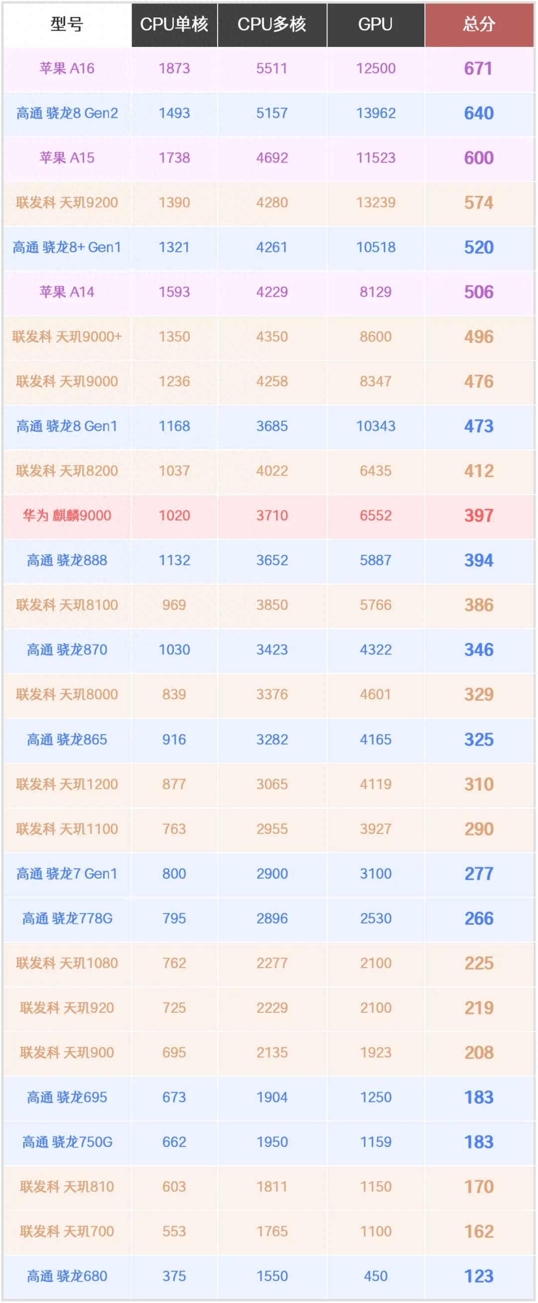一、2023手机CPU性能综合排名