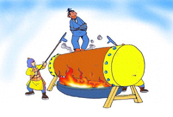 典故解释:此炮烙之法乃出自纣王之手,命人在下面烧炭火,等到铜柱被烧到通红后,让犯人走到上面去,活活烧死烫死,在上面惨叫,这个酷刑也可以参考外国的铜牛,非常的可怕,残暴。