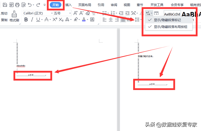 方式一:显示/隐藏段落标记删除分页符