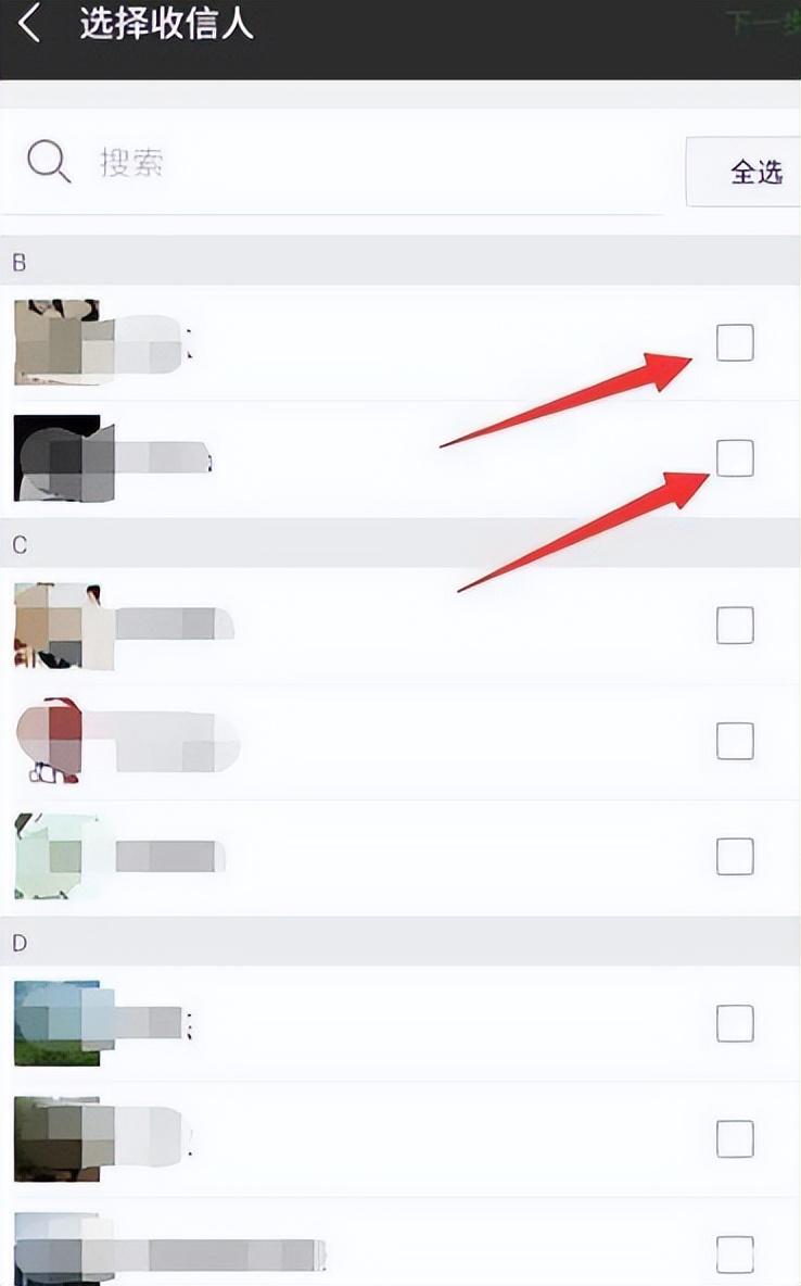 8、选好的朋友出现在顶部,点击下一步按钮,输入要发送的信息后点发送。