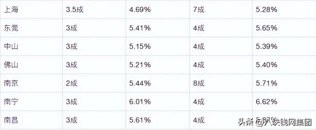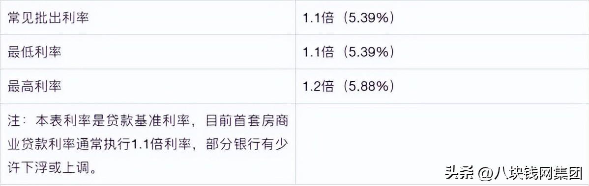 商业房贷首套房利率(首付最少3成)