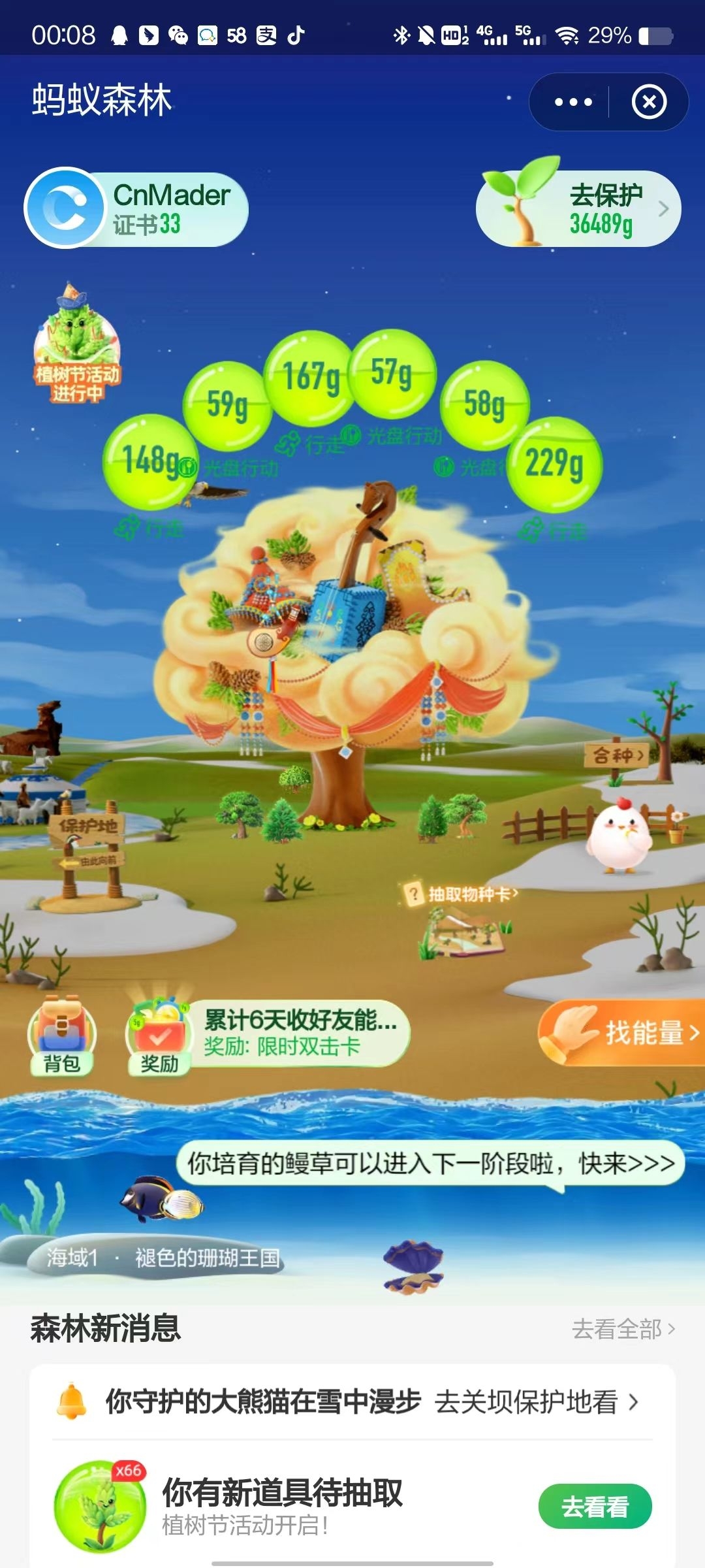 在森林点右上角三个点,点设置,关闭能量提醒,每天可领一个限时加速器,每个月可领森林三件套。