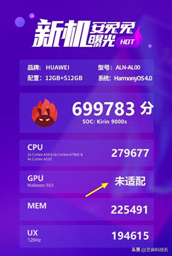 由于新架构GPU目前还没有被跑分软件识别,所以69w不是真正的跑分,算上GPU,保守估计能达到1w跑分或更高吧。