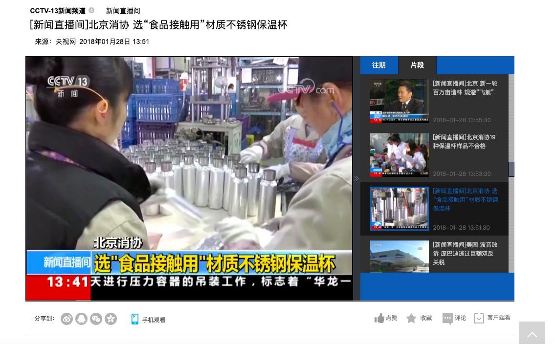 2018年,央视新闻频道《经济信息联播》的节目,就市场保温杯质量,做过一次深入的调查。