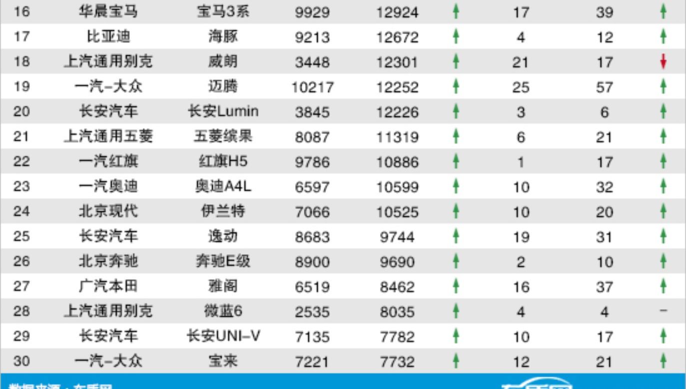 最后就是榜单的后十名了,包括五菱缤果、红旗H5、奥迪A4L、伊兰特、逸动、奔驰E级、雅阁、微蓝6、长安UNI-V以及宝来。这些车型在3月份的销量都表现出色,其中五菱缤果、红旗H5、奥迪A4L和伊兰特四款车型更是突破了万辆大关;逸动和奔驰E级的销量紧随其后,达到了九千多辆,也展现了它们不俗的市场表现。雅阁和微蓝6的销量则为八千多辆,同样不容小觑。长安UNI-V和大众宝来的销量则为七千多辆,也在这个竞争激烈的市场中占据了一席之地。在投诉量方面,通用别克旗下的微蓝6以4宗的投诉量成为了该榜单投诉最少的车型;其他几款车型的投诉量也都控制在两位数以内,表现同样值得肯定。