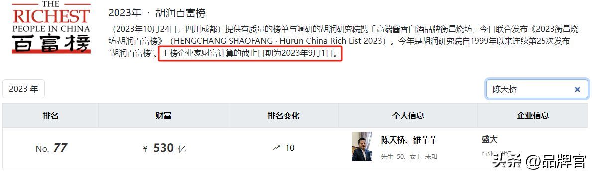 以至于,在2023年胡润百富榜,陈天桥夫妇身家“狂飙”至530亿元,排在第77位,一些老牌房企都排在了他们的后头,像杨惠妍家族还有万达王健林家族,真的是闷声发大财?